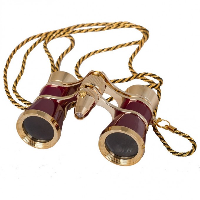 Центральная фокусировка позволяет быстро настроить нужную резкость, а светодиоды выполняют функцию фонарика, помогающего Вам в полутьме зрительного зала безошибочно определить свое место. Не менее полезна такая деталь, как цепочка – она не позволит Вам потерять или забыть бинокль, к тому же, выполненная из черных и золотых деталей, она гармонично сочетается с корпусом.